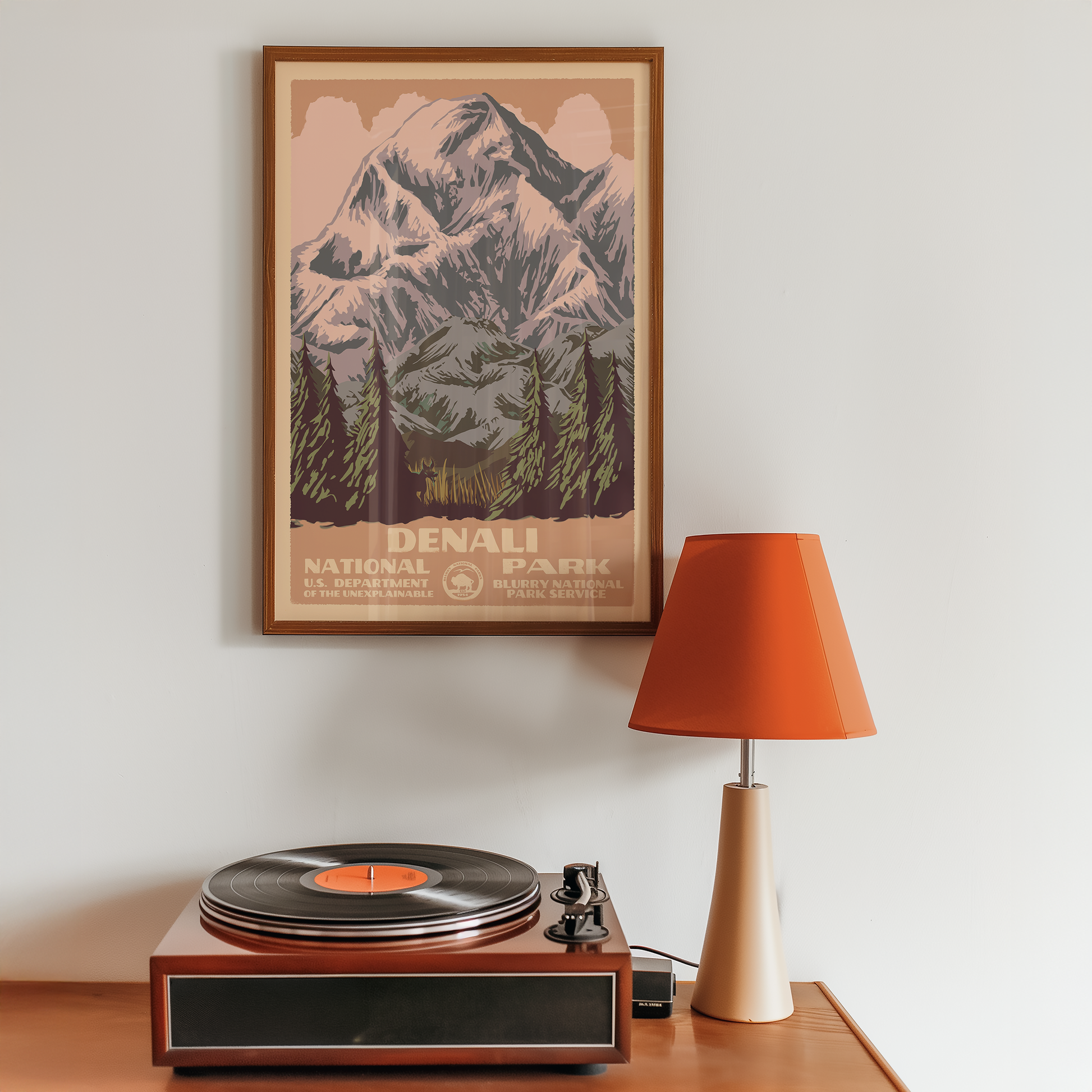 This poster is ideal for fans of Alaskan folklore, wildlife aficionados, and those who love a touch of otherworldly intrigue in their decor. Let Denali’s mystical allure haunt your walls!