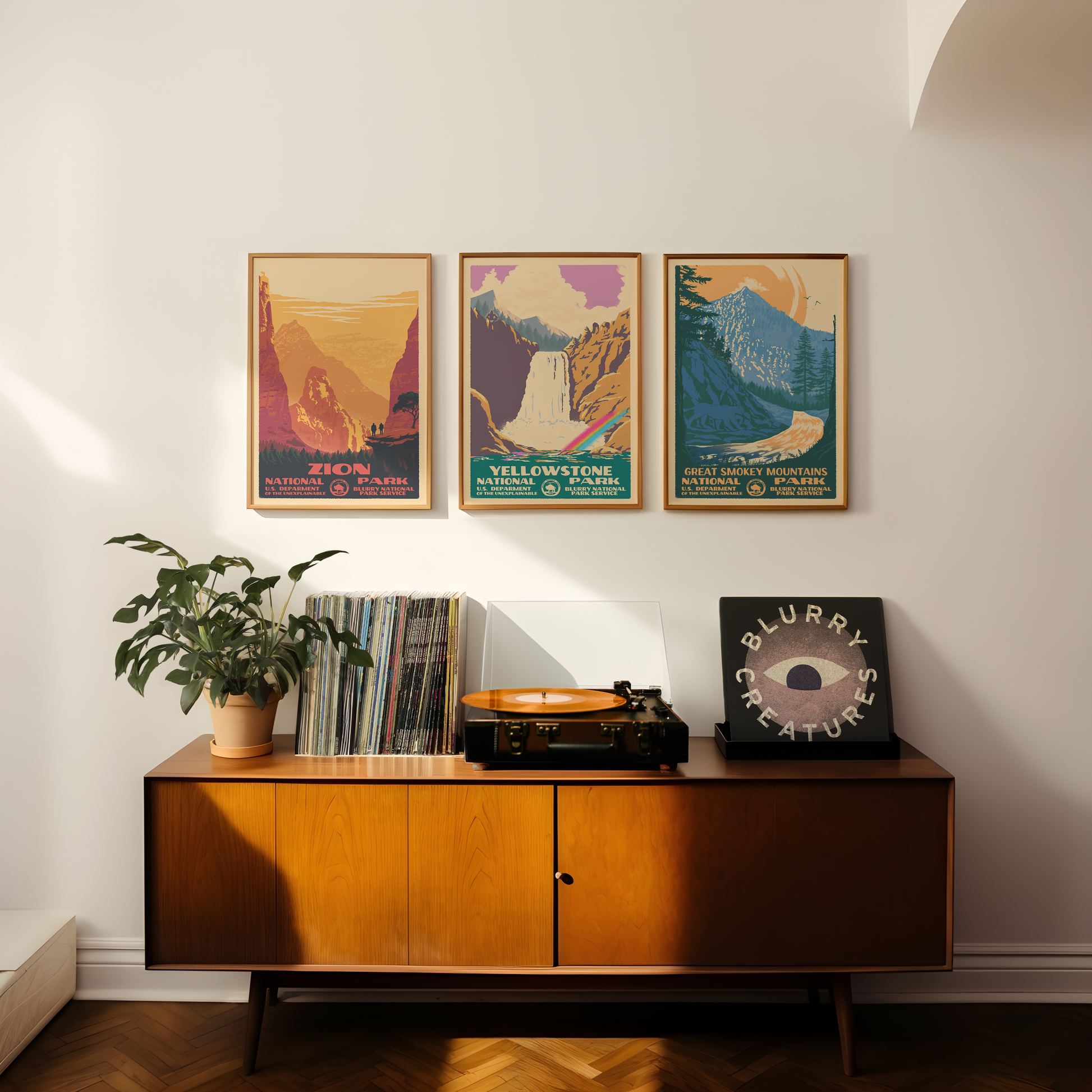 This collection of premium park prints celebrates beauty and blur. From afar they’re park posters, but up close they get real blurry!